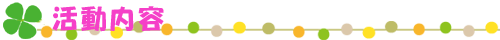 | ひとりひとりの子どもの発達状態に合わせた活動(トイレトレーニング、食事のしつけ、友達との交わり、遊びの充実等)を図る。 |